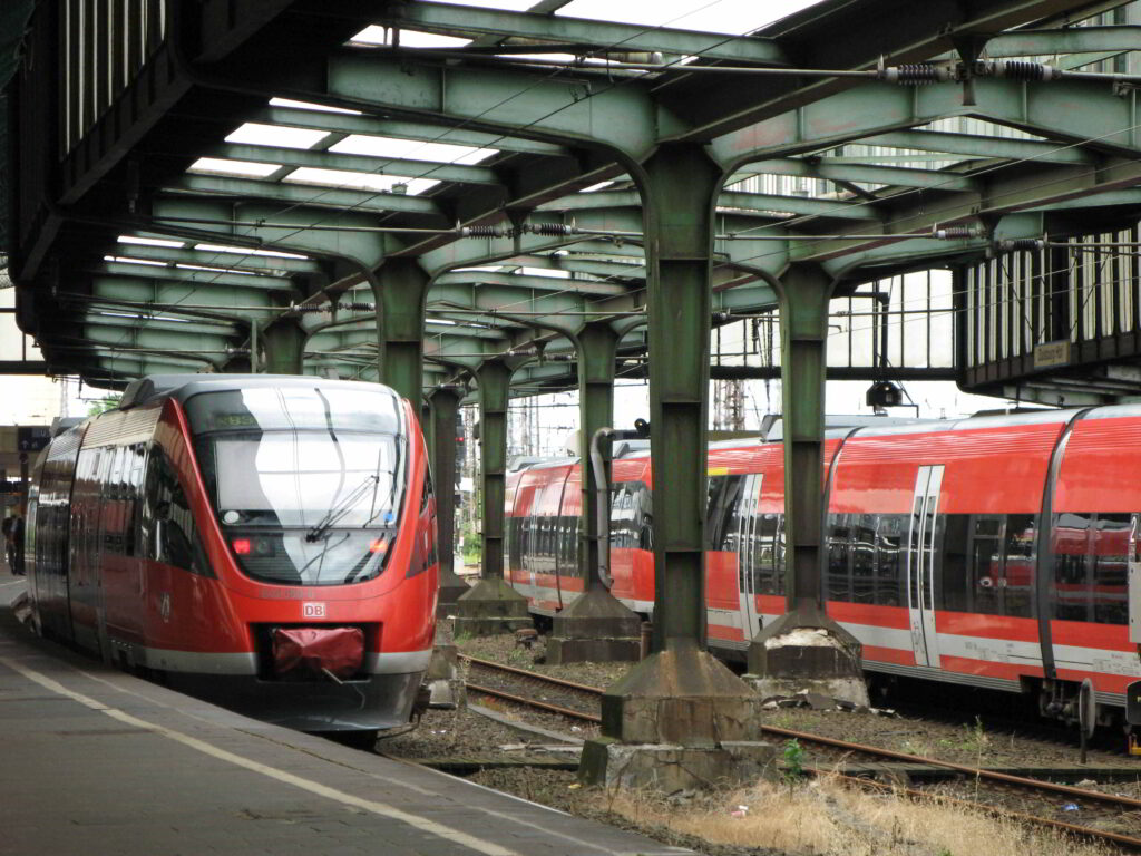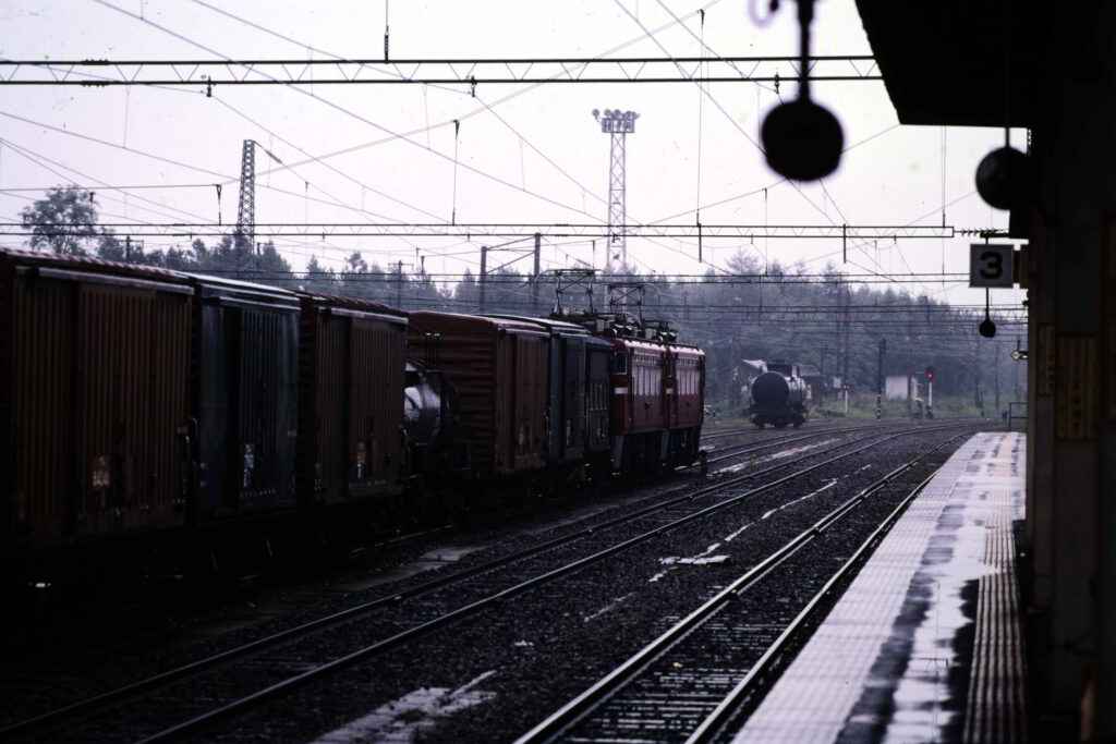 日本ではタワーマストとクロススパンで架線が支持されている例は多くありません.私が知る限りでは東北本線の郡山駅の一部や奥羽本線の東能代駅で見ることができました.ただし東能代駅ではクロススパンで鉄製の横桁を支持しており,欧州の一般的なクロススパンによる架線支持方法とは異なります(写真は80年代のもので現存しているかは不明です).そこで今回は欧州の雰囲気がより感じられるように待機線とホーム上屋の間の架線支持方式にはタワーマストとクロススパンを用いました.