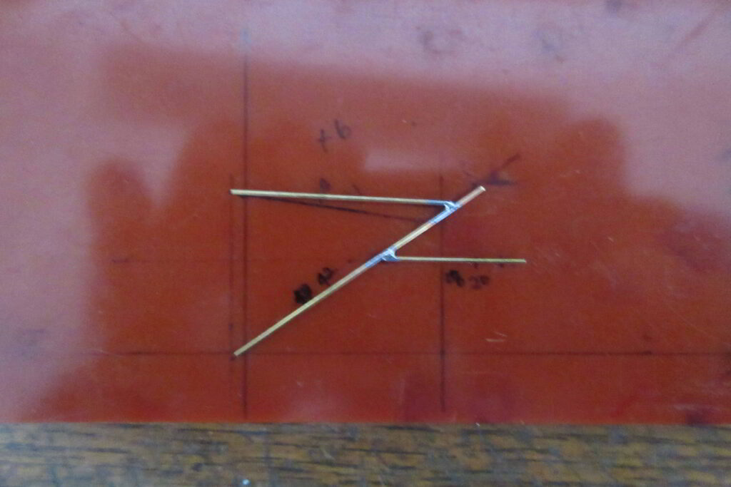 ブラケットおよびクロススパンは真鍮線による自作とする.クロススパンは直径0.6㎜の真鍮製.ブラケットは直径0.7ミリの真鍮線を使用し,はんだ付けにより組み立てて後ラッカー塗装を行う.