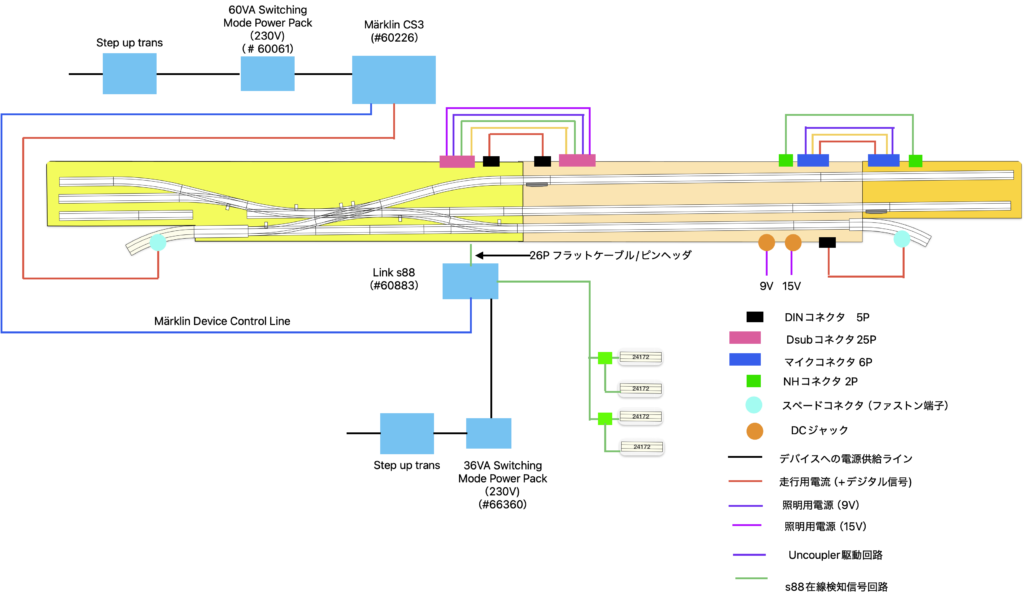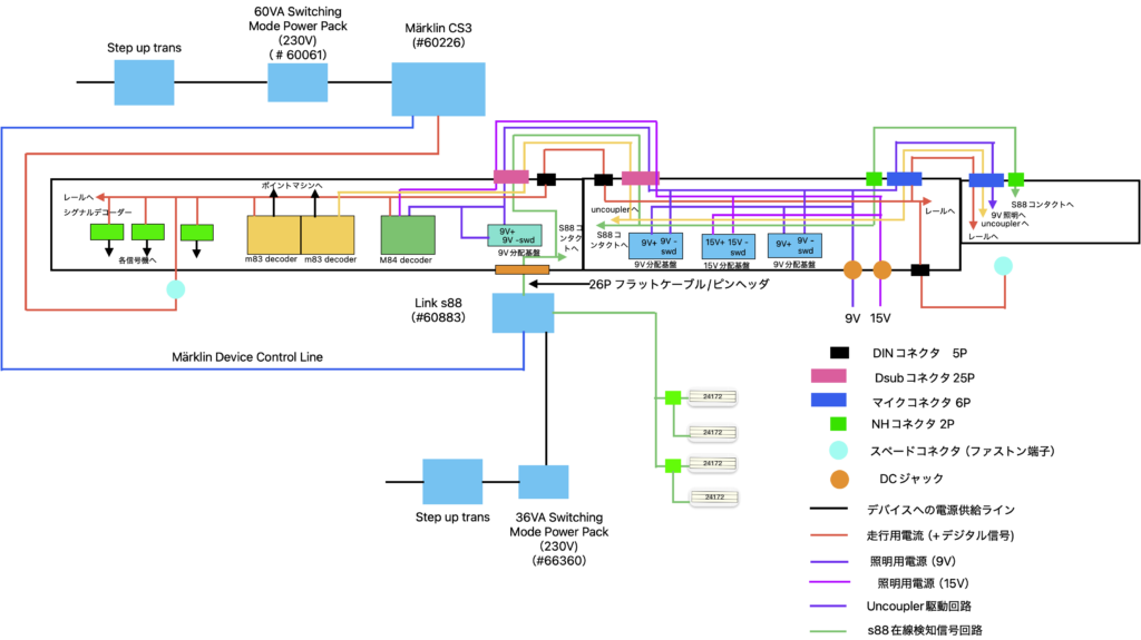 以上でこのレイアウトの電気関係の仕様と実際の配線方法の紹介を終了します.次回以降はシーナリーやストラクチャー等,技術的な仕様以外の部分を紹介していきたいと思います.最後までお読みいただきありがとうございました.