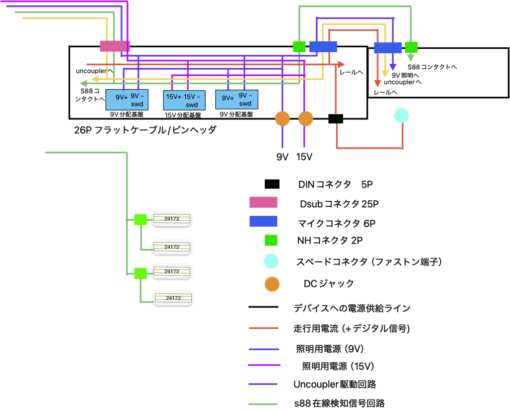 当初の計画ではLink s88をModule内に設置する計画であったため25PのDsubコネクタを使用したのですがその後Link s88をモジュール外に設置することとしましたのでDsubkネクタには多くの空きピンが発生しています.