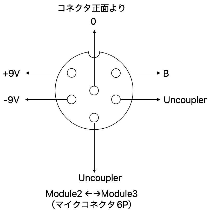 まずモジュールに取り付ける外付けのデバイスとモジュール間を結ぶケーブルの配線図を示します.この図にはモジュール内にあるm83デコーダー,m84デコーダー,シグナルデコーダーは表示しておりません.